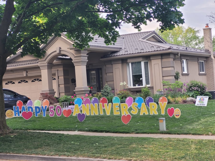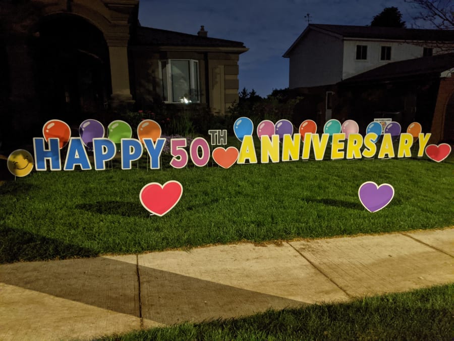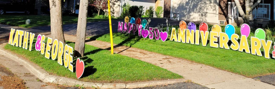 This themed yard card rental sign is great for anyone Celebrating a Special Anniversary. We can custom to say most small phrases and say anything you wish!
